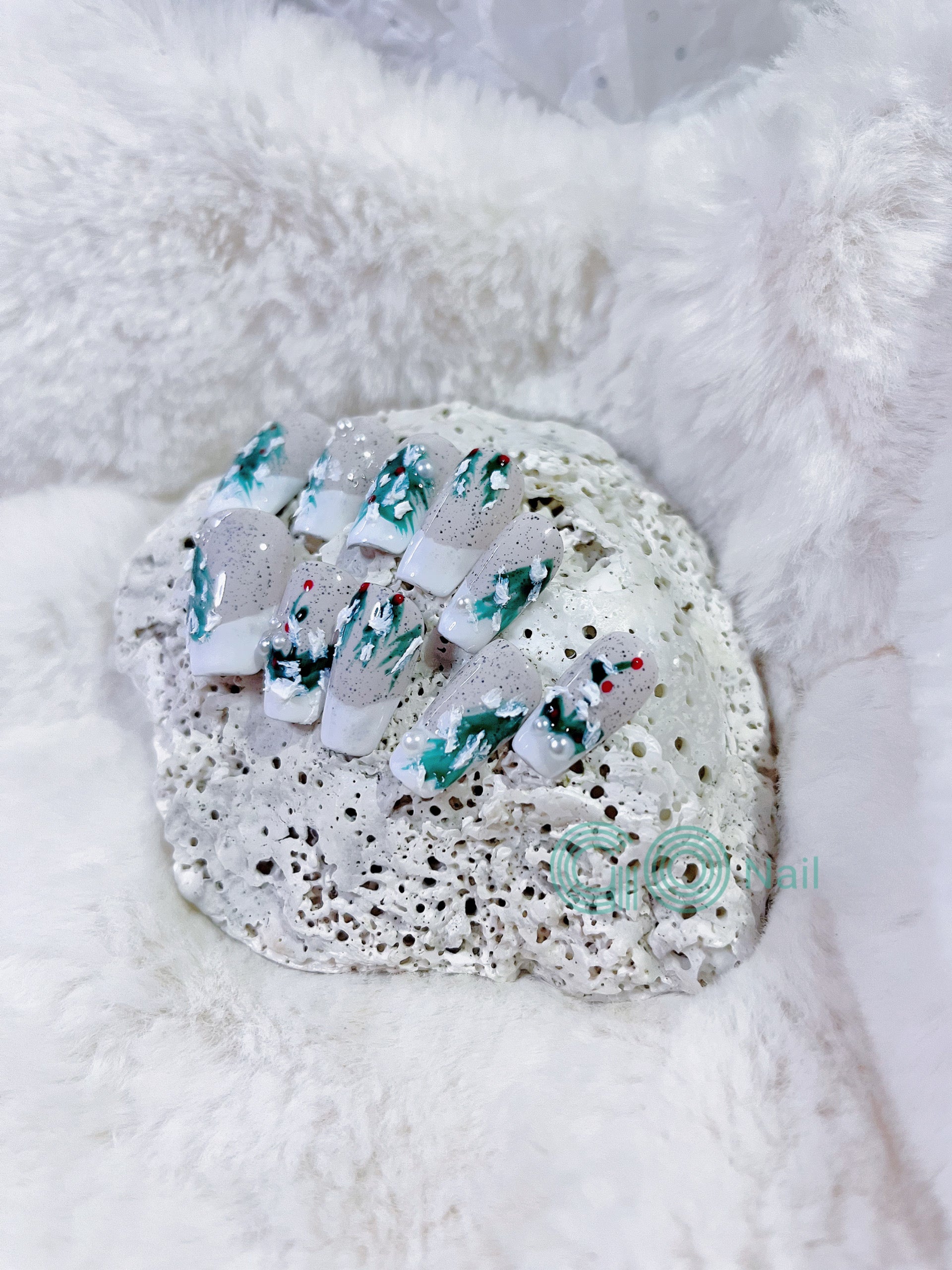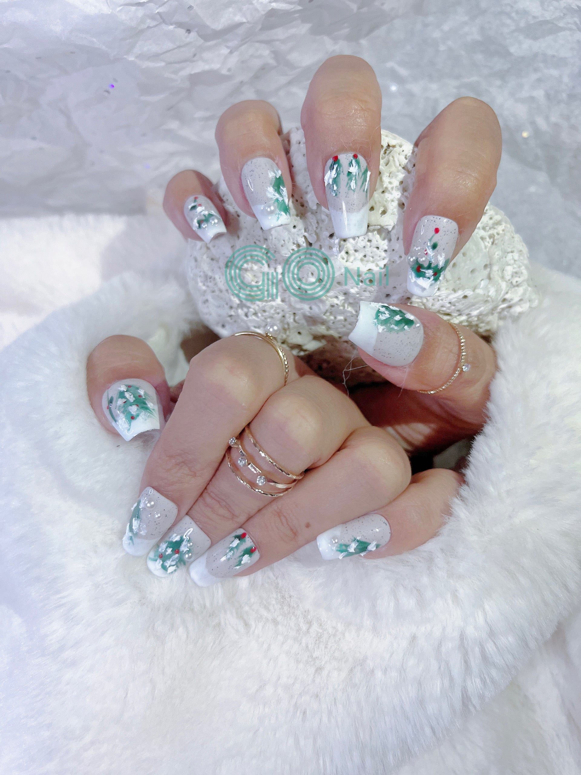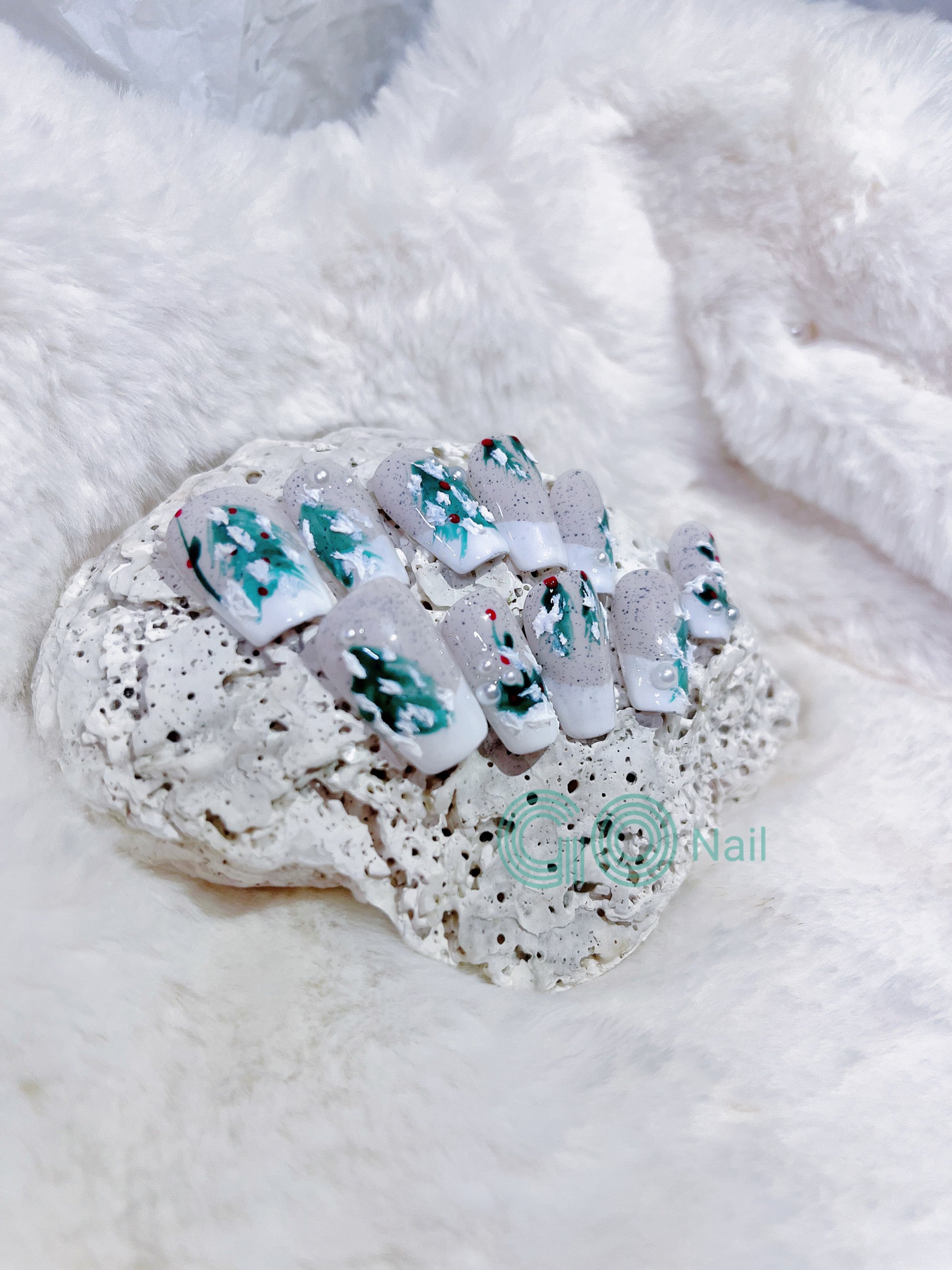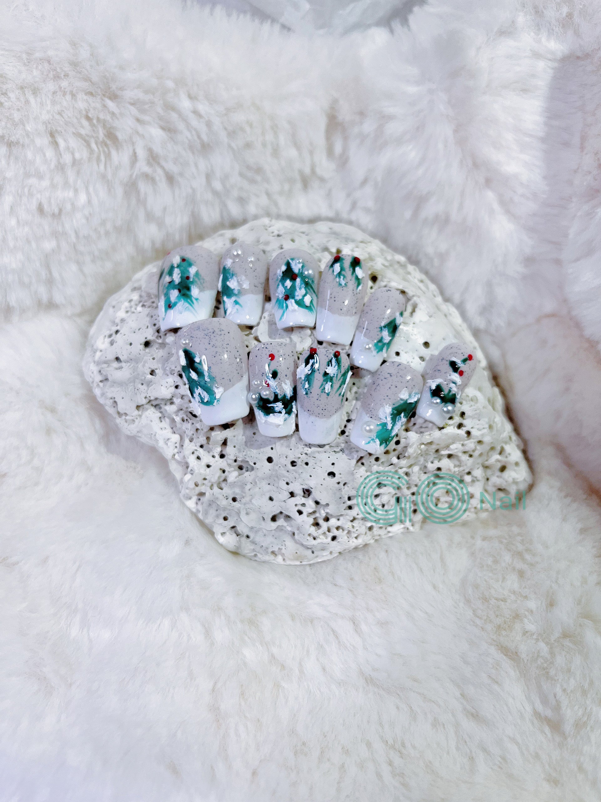 Christmas tree French style press on nails